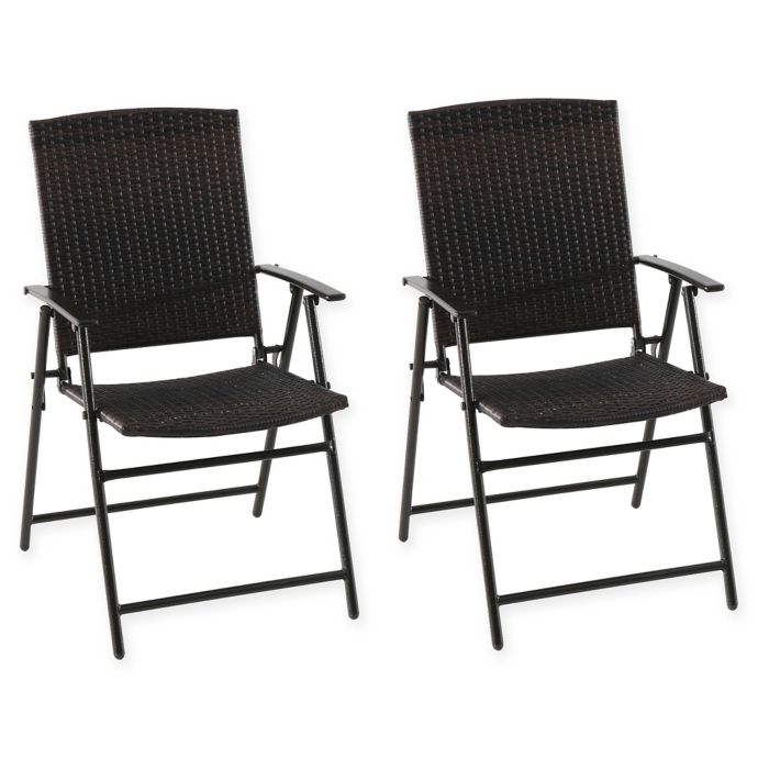 Wicker Folding Chairs : Barrington Wicker Bistro Folding Chairs in Brown (Set of 2 ... - Crafted with a durable powder coated steel frame with a wicker seat and back, this chair conveniently folds for easy storage and moving.